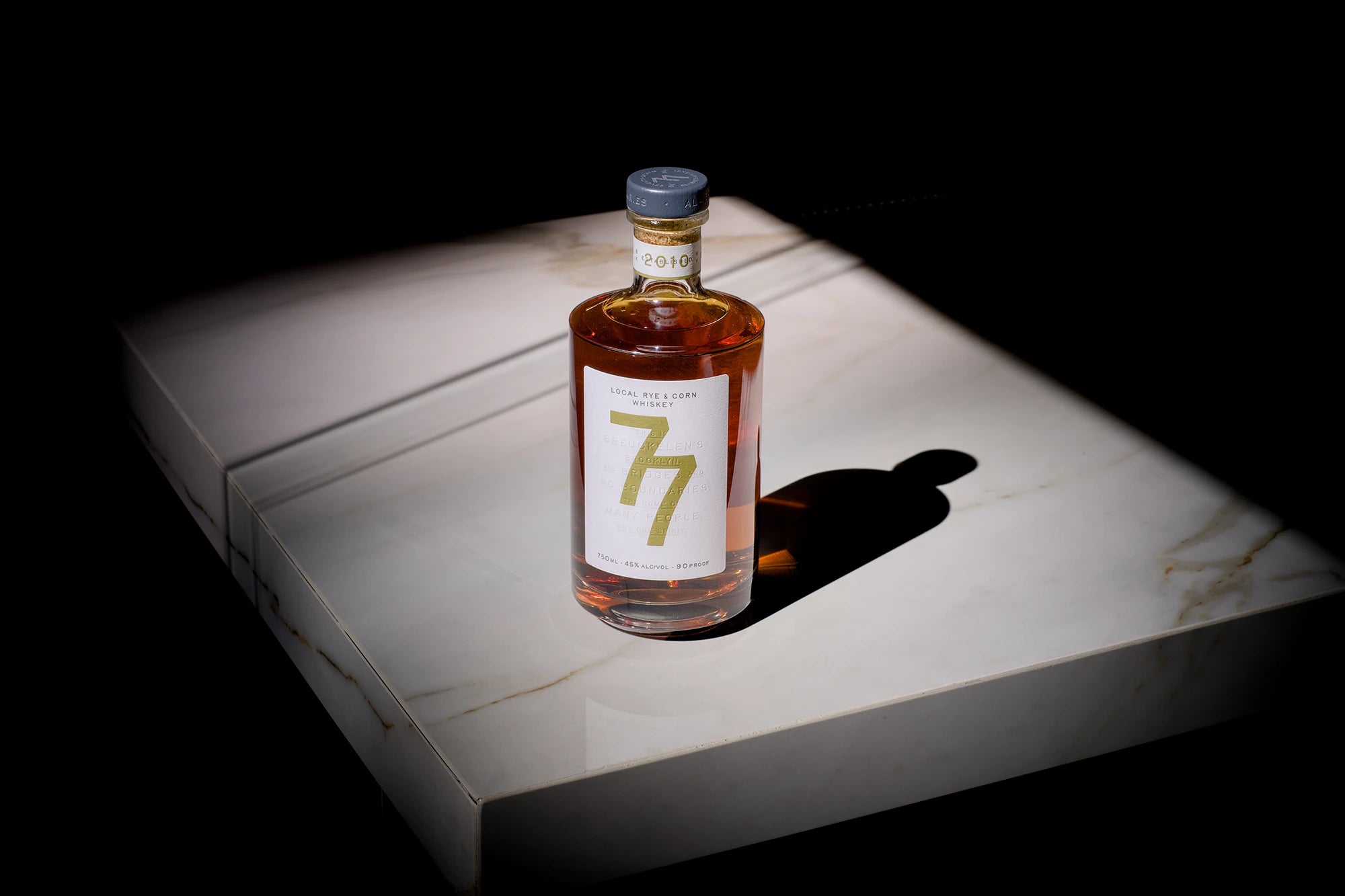 77 The Local Corn & Rye is a blend of New York–grown corn and rye, barrel-aged for two years. The corn delivers sweetness and round texture, while the rye brings brightness and gentle spice. Distilled and finished in Brooklyn, it’s a warm, approachable whiskey designed for easy sipping and classic cocktails.