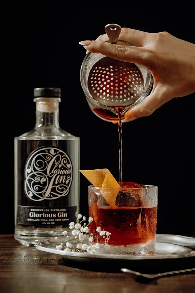 Glorious Gin is distilled from New York wheat and crafted one botanical at a time–juniper, lemon peel, grapefruit peel, ginger, and rosemary. Each botanical is individually distilled and then blended to create a bright, layered gin with citrus lift, herbal depth, and gentle spice. Glorious Gin is a modern gin–bold, bright, and exceptionally crafted.